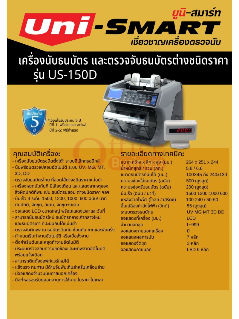 เครื่องนับธนบัตรสูญญากาศตั้งพื้น Uni-smart US-7750U