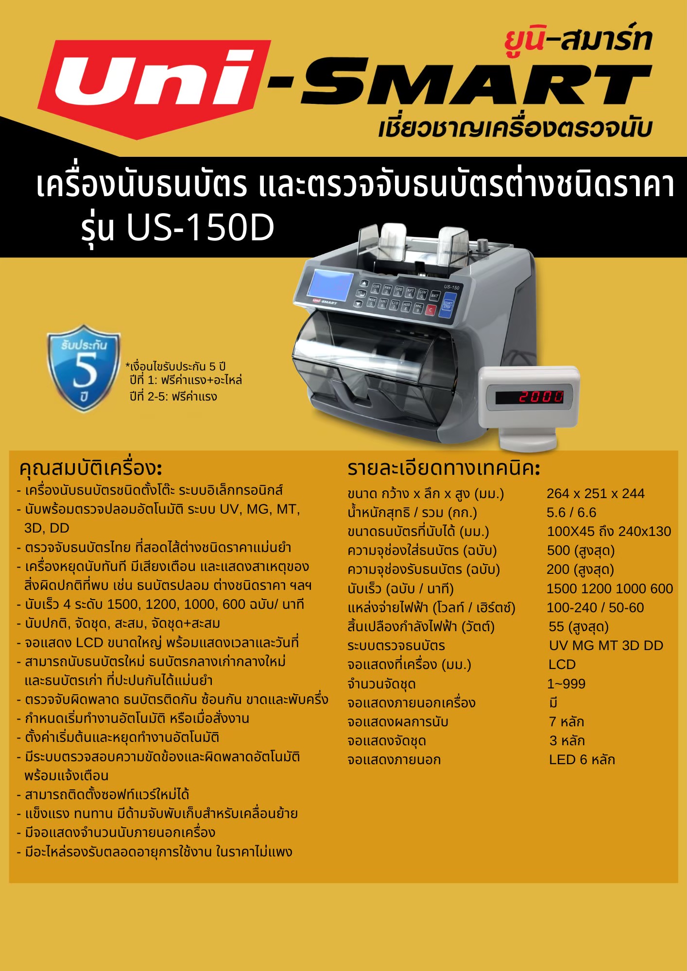 เครื่องนับธนบัตร ตรวจปลอมอัตโนมัติ รุ่น US-2750