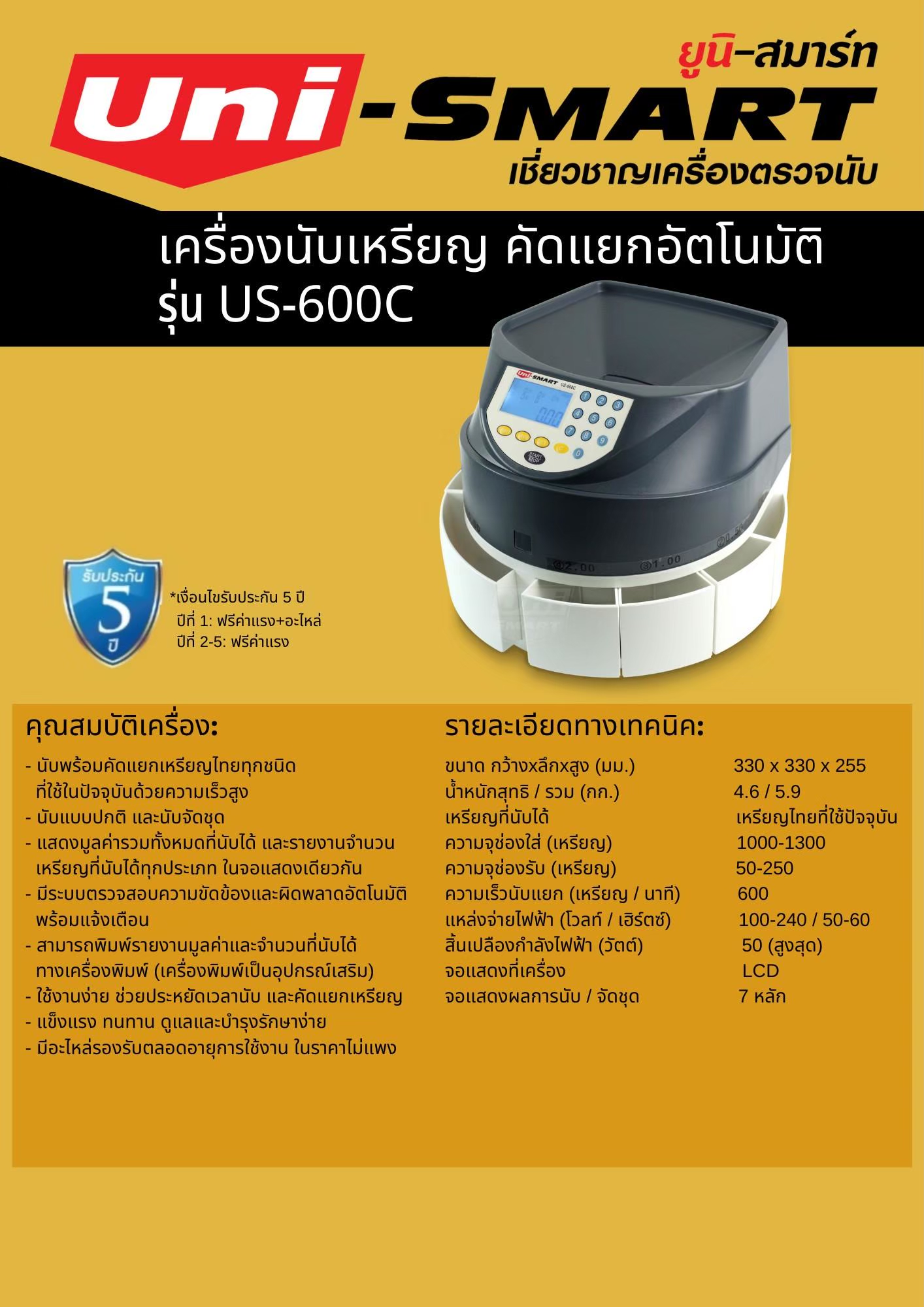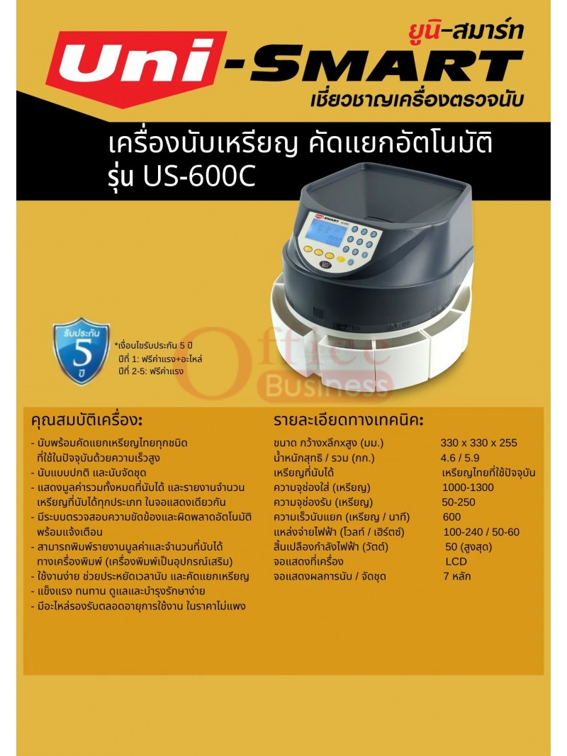 เครื่องนับและคัดแยกเหรียญ Uni-smart US-600C