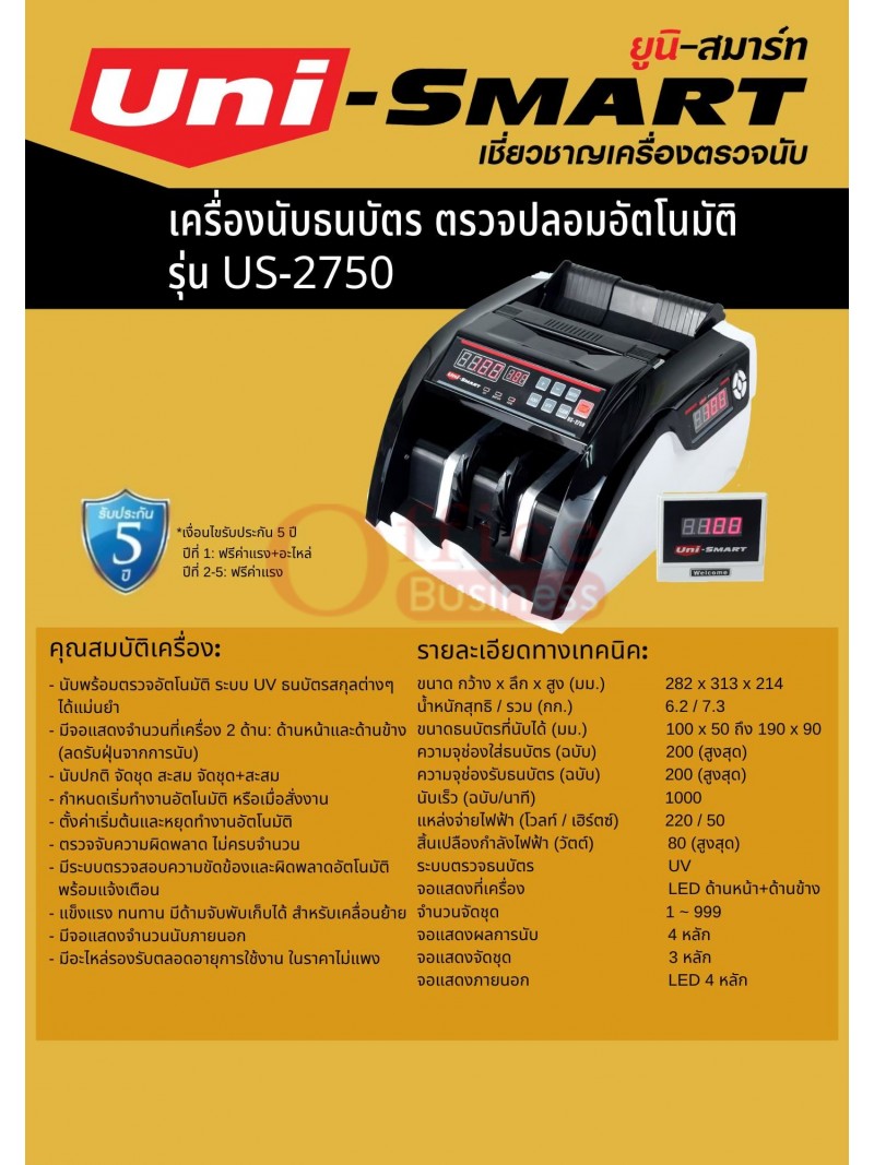 เครื่องนับธนบัตร Uni-smart US-195