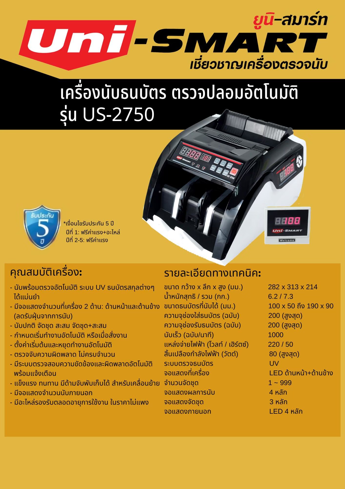 เครื่องนับธนบัตร Uni-smart US-168
