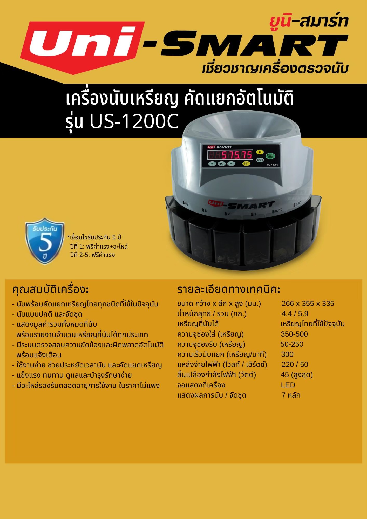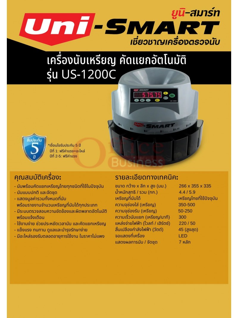 เครื่องนับและคัดแยกเหรียญ Uni-smart US-600C