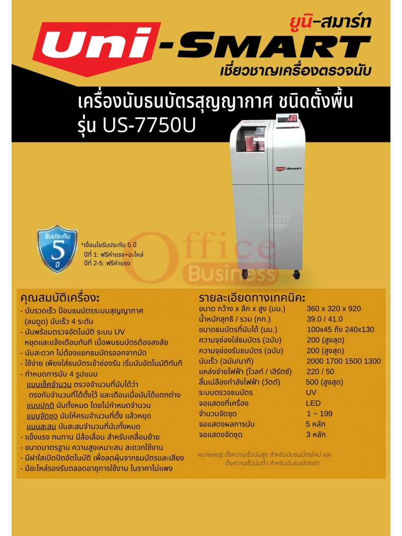 เครื่องนับธนบัตร Uni-smart US-195