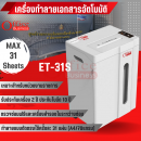 เครื่องทำลายเอกสารแบบตัดเส้นตรง ทำลายครั้งละ 30 แผ่น ยี่ห้อ OFFICE BUSINESS รุ่น ET-31S ประกันเครื่อง 2 ปี ใบมีด 10 ปี ใช้สำหรับหน่วยงานราชการ มีบริการหลังการขายตรวจ