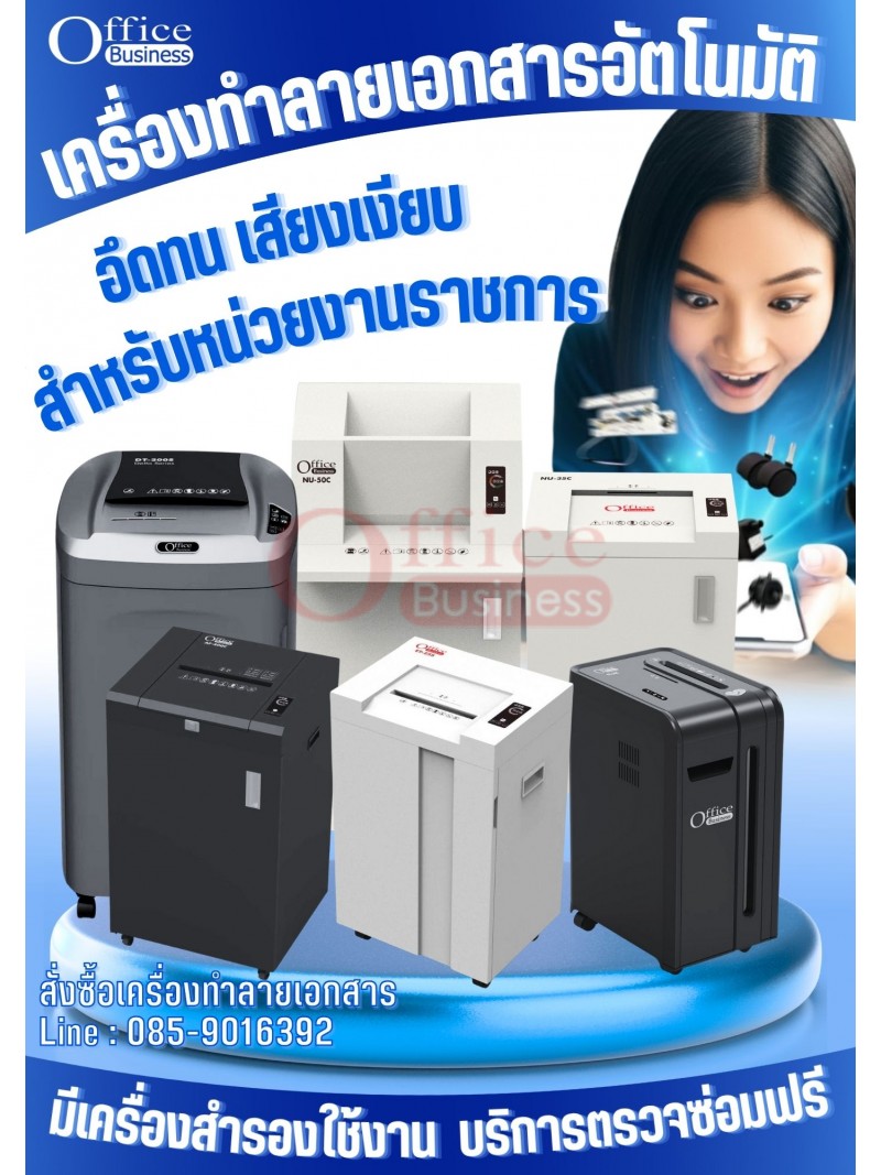 เครื่องทำลายเอกสารแบบตัดละเอียด ทำลายครั้งละ 50 แผ่น OFFICE BUSINESS NU-50C ประกันเครื่อง 2 ปี ใบมีด 10 ปี มีบริการหลังการขาย