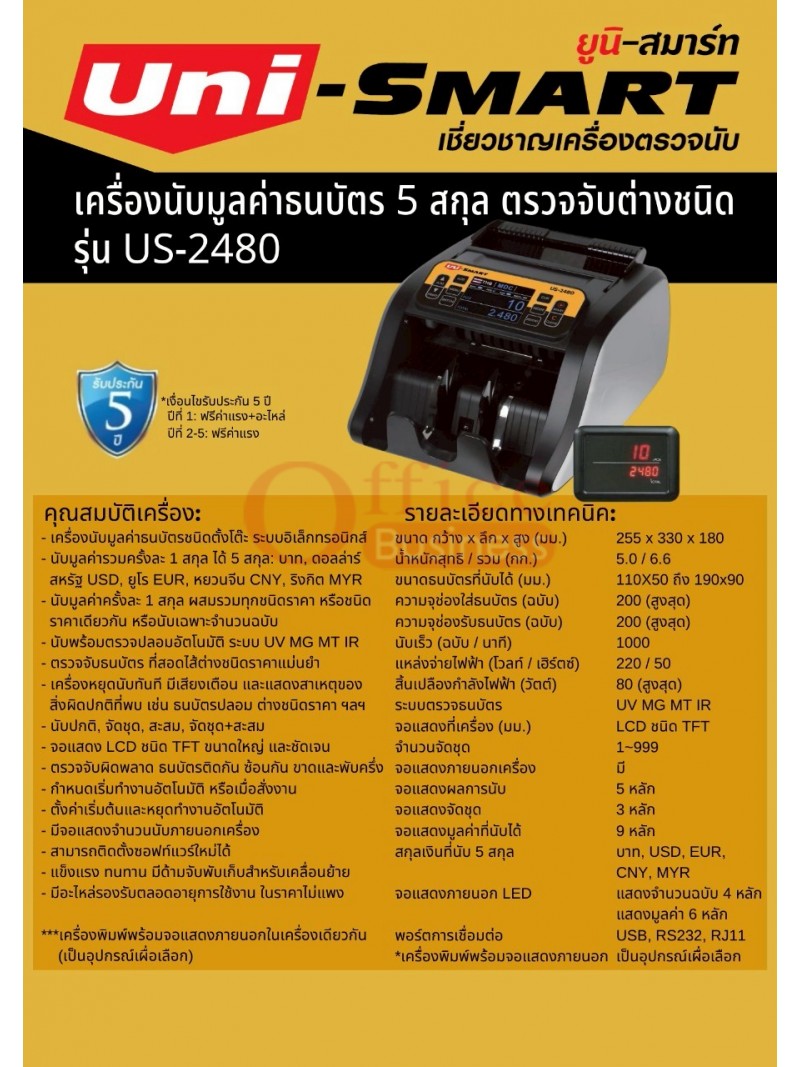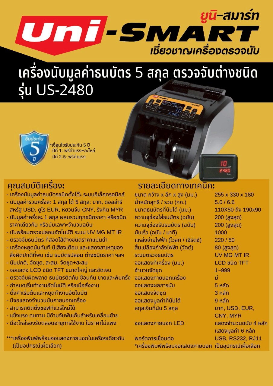 เครื่องนับธนบัตร Uni-smart US-2480