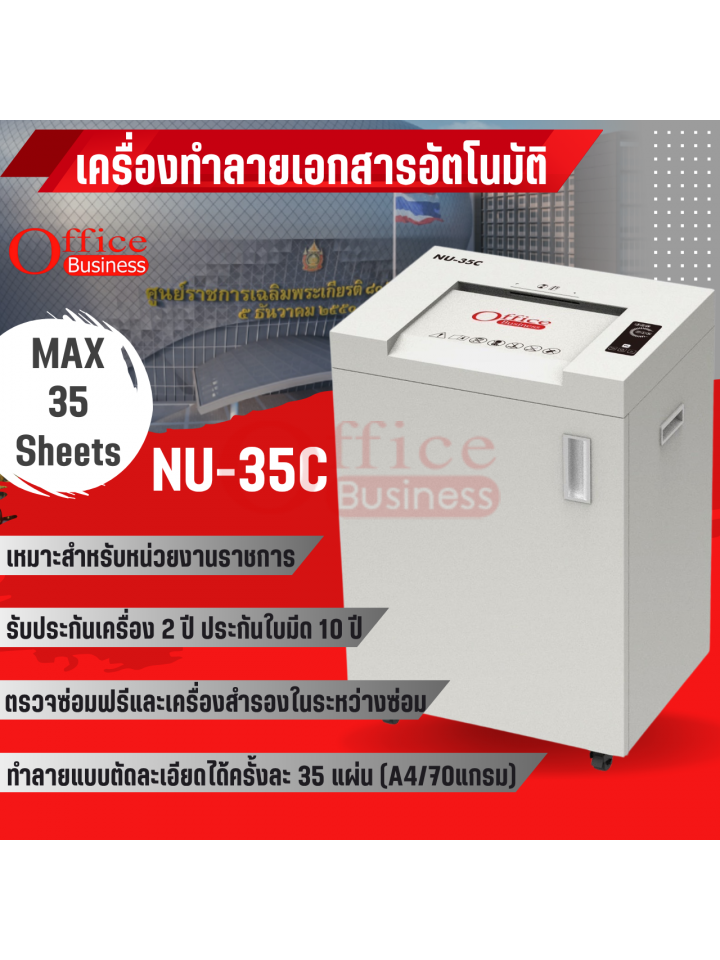 เครื่องทำลายเอกสารแบบตัดละเอียด ทำลายครั้งละ 50 แผ่น OFFICE BUSINESS NU-50C ประกันเครื่อง 2 ปี ใบมีด 10 ปี มีบริการหลังการขาย